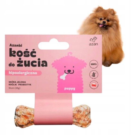 • AZANKI Kość do żucia dla SZCZENIĄT ze skóry JELENIA z probiotykiem 10cm
