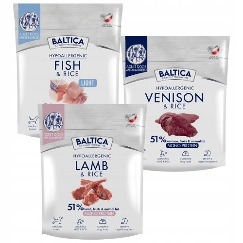 BALTICA ADULT Fish Venison Lamb rice MIX DLA RAS ŚREDNICH 3X1KG