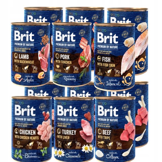 BRIT PREMIUM BY NATURE Mokra Karma dla Psa MIX SMAKÓW 12X400g