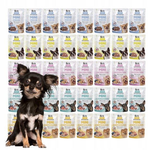 Brit Care Mini Pouch 40x85 MEGA ZESTAW ZAPAS Saszetki karma dla miniaturki