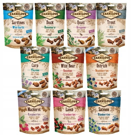 • Carnilove DOG SNACK CRUNCHY SOFT ZESTAW WSZYSTKICH SMAKÓW 10X200