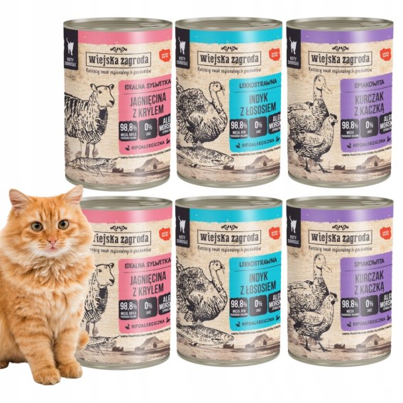 • Karma dla kota Duoproteinowa Wiejska Zagroda Mix smaków 6x400g