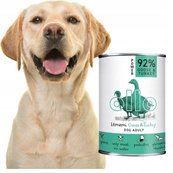 Skład: Indyk 52% (mięso mięśniowe), Gęś 40% (mięso mięśniowe), Cukina 2%,Marchew 2%, Ziemniaki 2%, Jabłka 0,5%, Żurawina 0,5%, Zioła (Dzika róża, Pokrzywa,Kurkuma, Mniszek lekarski, Ostropest, Rumianek, Yucca Schidigera), Drożdże piwne,Węglan wapnia z muszli ostryg, Inulina, Fruktooligosacharydy (FOS), Siarczanglukozaminy (80 mg/kg), Siarczan chondroityny (50 mg/kg).