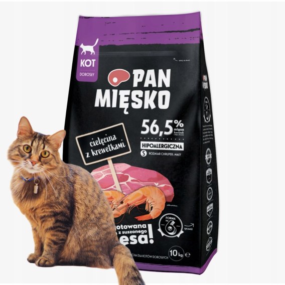 Pan Mięsko karma sucha dla kota Cielęcina z krewetkami S 10kg