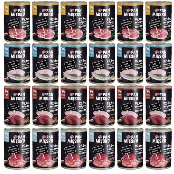• Pan Mięsko Pakiet 24x400 Mix Smaków Indyk z Jeleniem, dorszem, z dzikiem