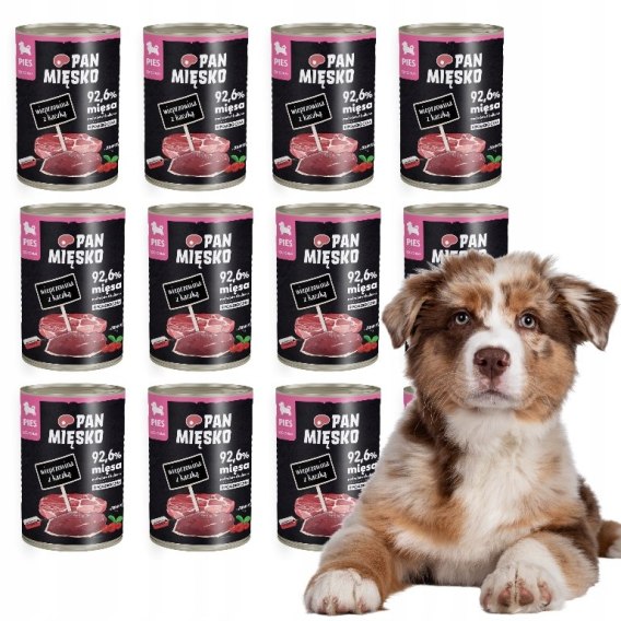Pan Mięsko Wieprzowina z kaczką 12x400g Szczeniak Mokra Karma Puszki