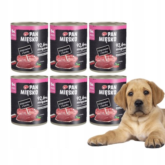 Pan Mięsko Wieprzowina z kaczką 6x800g Szczeniak Mokra Karma Puszki