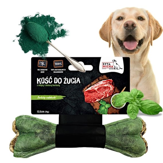 Kość do żucia dla psa na świeży oddech 13,5 cm z miętą i zieloną herbatą