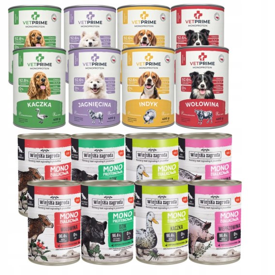 WIEJSKA ZAGRODA MONOPROTEINA MOKRA KARMA DLA PSÓW DOROSŁYCHMIX SMAKÓW 16 X 400 GW SKŁAD ZESTAWU WCHODZĄ: