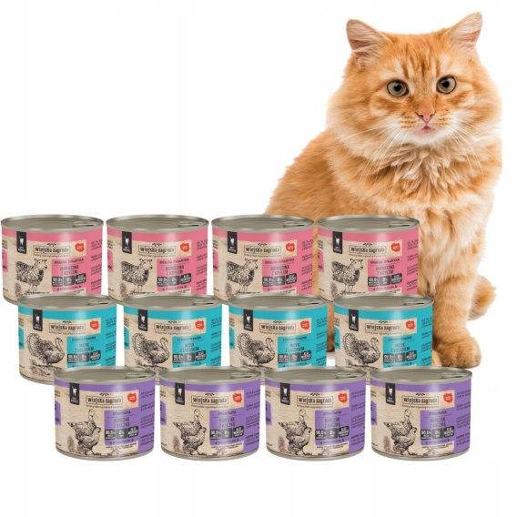 Wiejska Zagroda 12x200 MIX SMAKÓW INDYK KURCZAK Z KACZKĄ JAGNIĘCINA Z KRYLE