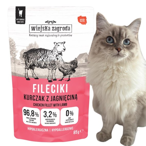 • Wiejska Zagroda Karma mokra dla kota Fileciki Kurczak z jagnięciną (dorosły) 85g