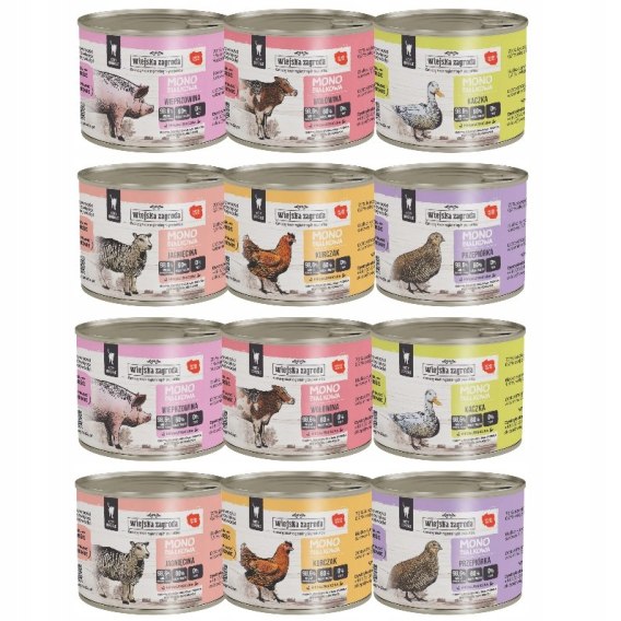 Wiejska Zagroda Zestaw Mono 12x200 MIX SMAKÓW DLA KOTA DOROSŁEGO