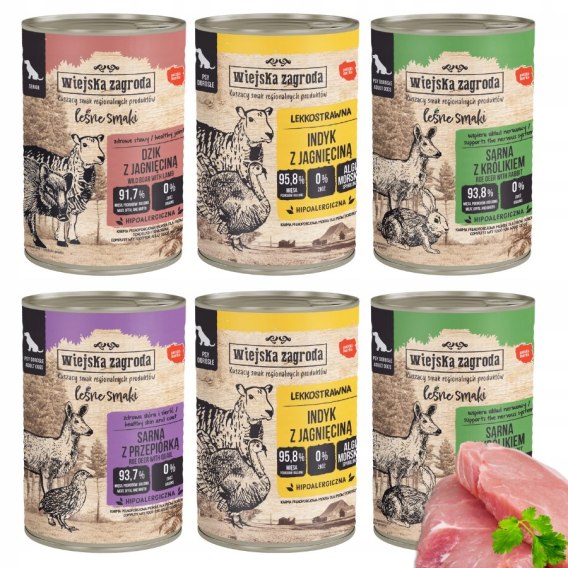 ZESTAW Wiejska INDYK Z JAGNIĘCINĄ Smaki Sarna z przepiórką 6X400g puszka