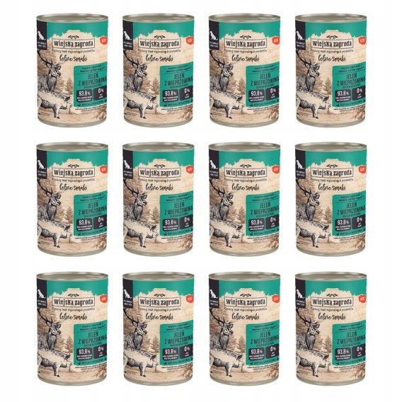 • ZESTAW Wiejska Zagroda Leśne smaki Jeleń z wieprzowiną 12X400g puszka